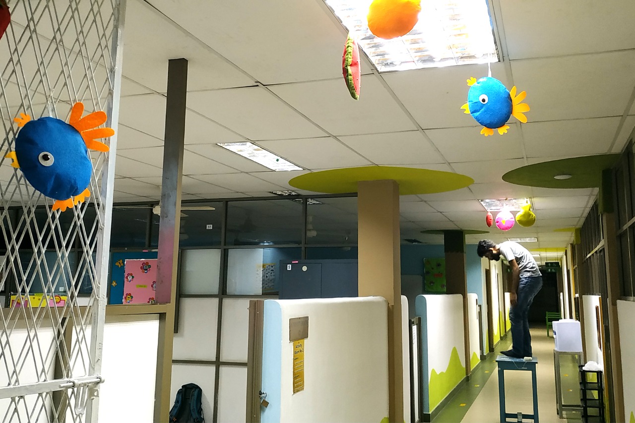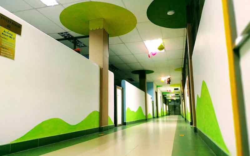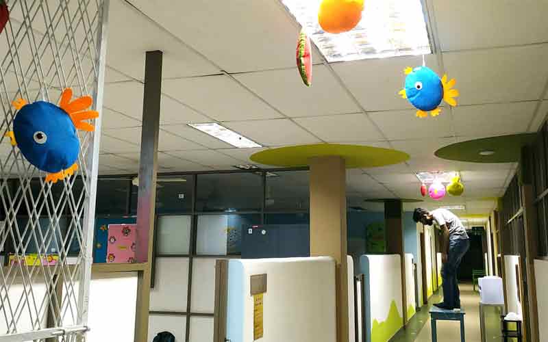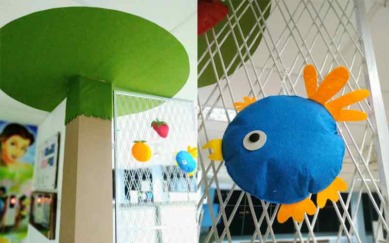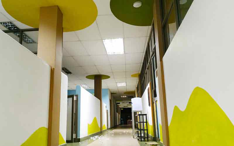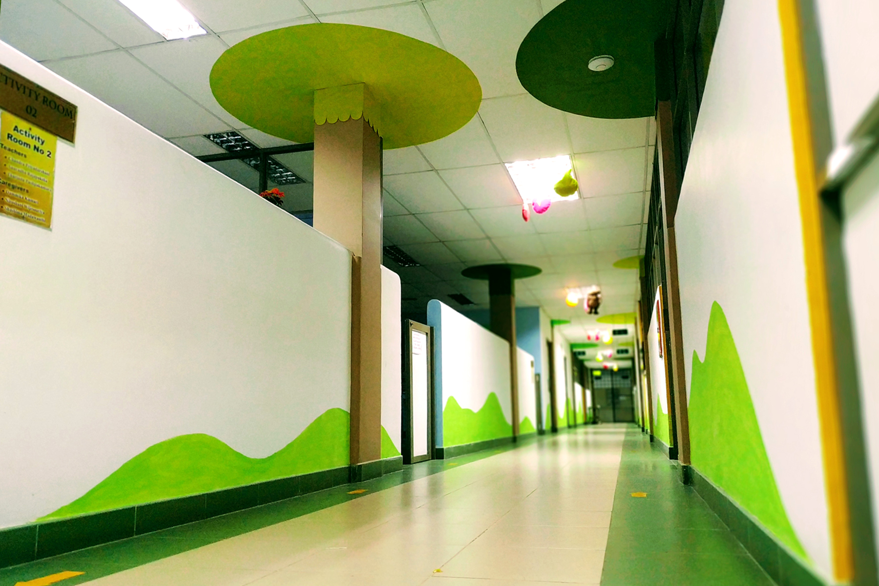 The design ended up converting the lifeless walls of the Autism Management Programme Unit - the newly built wing at the Senehasa Institution- into a breathtaking sight full of life for the kiddos. The unique wall designs stretching through the concrete walls of the wing were simply astonishing as they helped relive the vast vanishing greenery by welcoming the lovely kids to the world of trees with the soft touch and warmth of mother nature.